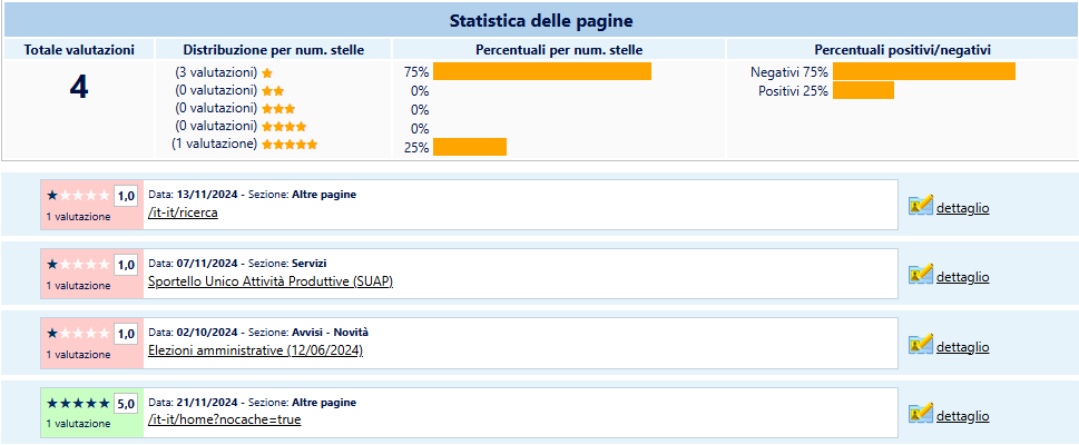Valuta da 1 a 5 stelle la pagina
